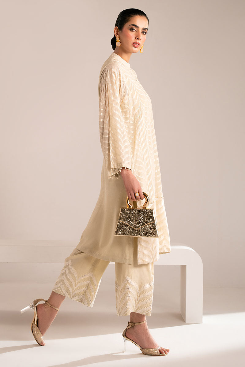 • Elevate Your Wardrobe With Our Chevron Bliss 2-Piece Set. The Loose Fit Chiffon Shirt Features Intricate Embroidery, Delicate Lace, And Playful Tassels For A Bohemian Touch. Paired With Dyed And Embroidered Culottes, This Set Offers Comfort And Style In One. Perfect For Any Occasion.