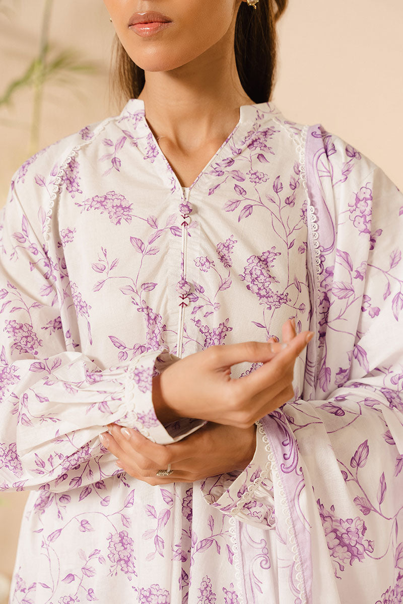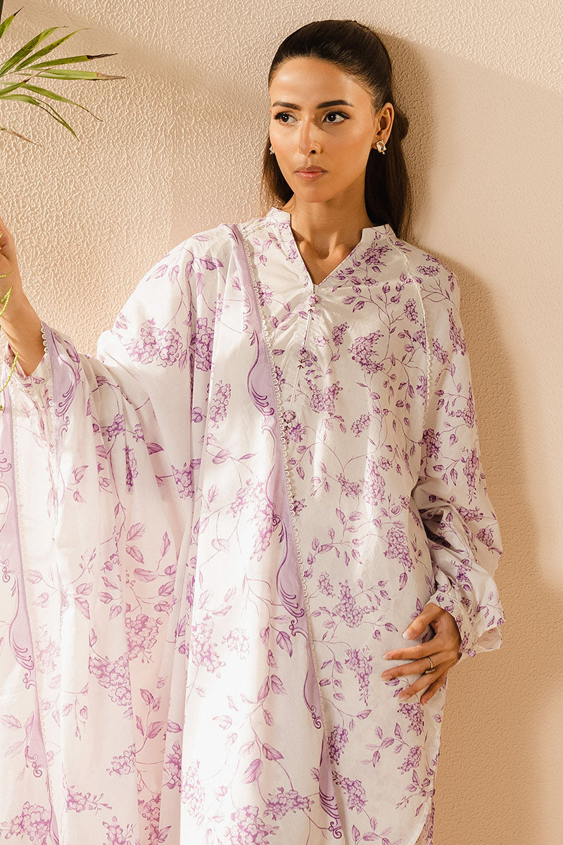 - Elevate Your Summer Wardrobe With Our Lilac Muse-3Pc Ensemble. The Straight Loose Fit Shirt Features A Beautiful Front And Back Print, Adorned With A Half Banded Neckline And Dori Piping With Button Detailing. The Raglan Sleeve Is Elegantly Finished With Lace Detailing. The Lawn Printed Box Pants And Dupatta Complete The Look For A Bold Yet Feminine Statement.