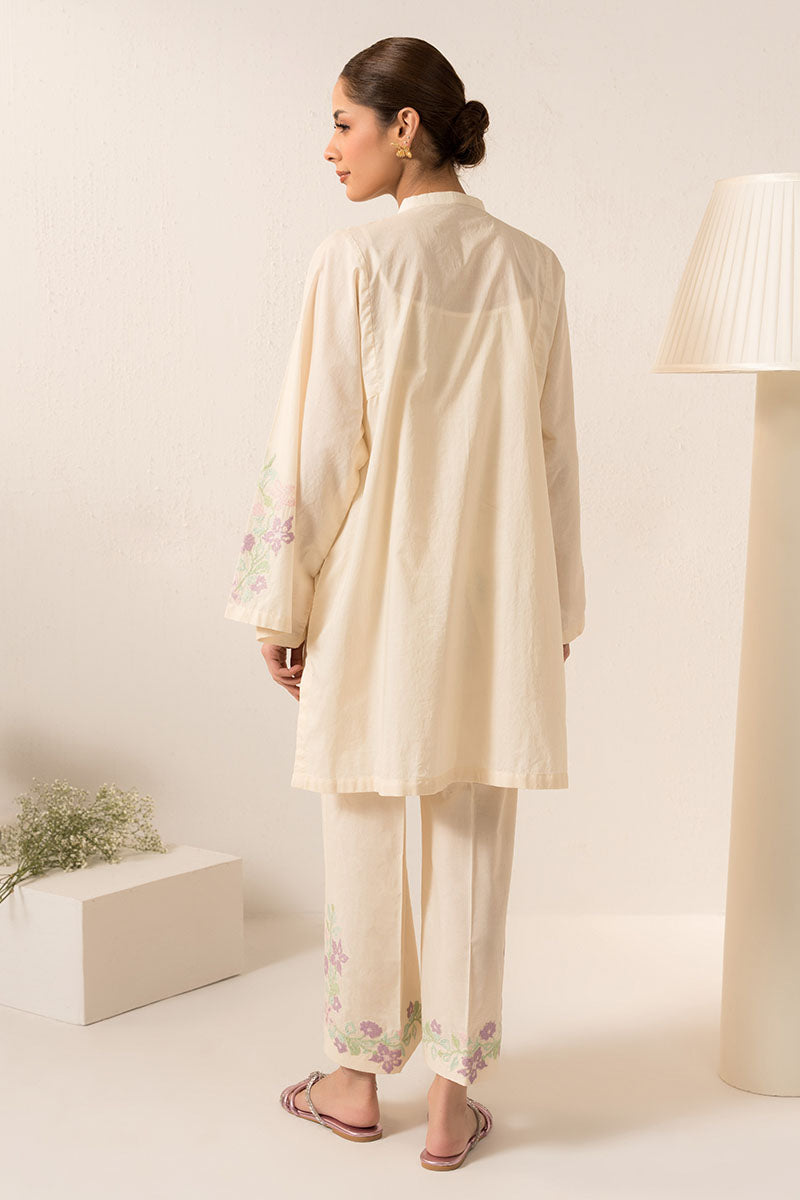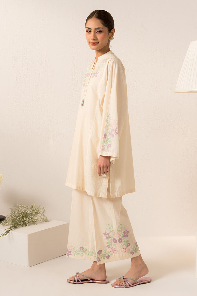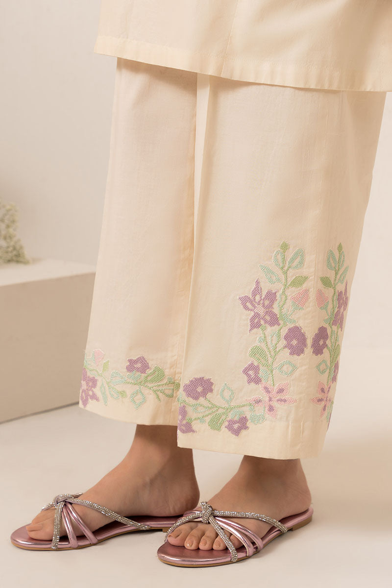 - The Pearled Ivoryy-2Pc (Shirt &Amp; Trouser) Is An Elegant And Versatile Garment Set. The Shirt Features A Flattering Boxy Fit With A Half Band Neckline, Detailed With V Embroidery And Tassel. The Box Sleeves Are Adorned With Delicate Embroidery Motifs. The Trouser Is Crafted From Cambric Fabric With Intricate Embroidery On The Hem, Creating A Stylish Culotte Silhouette. Perfect For Any Occasion.