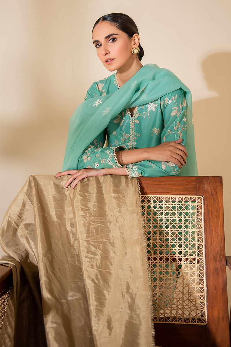 - Rajjo Net Matte Thread Embroidered Dupatta