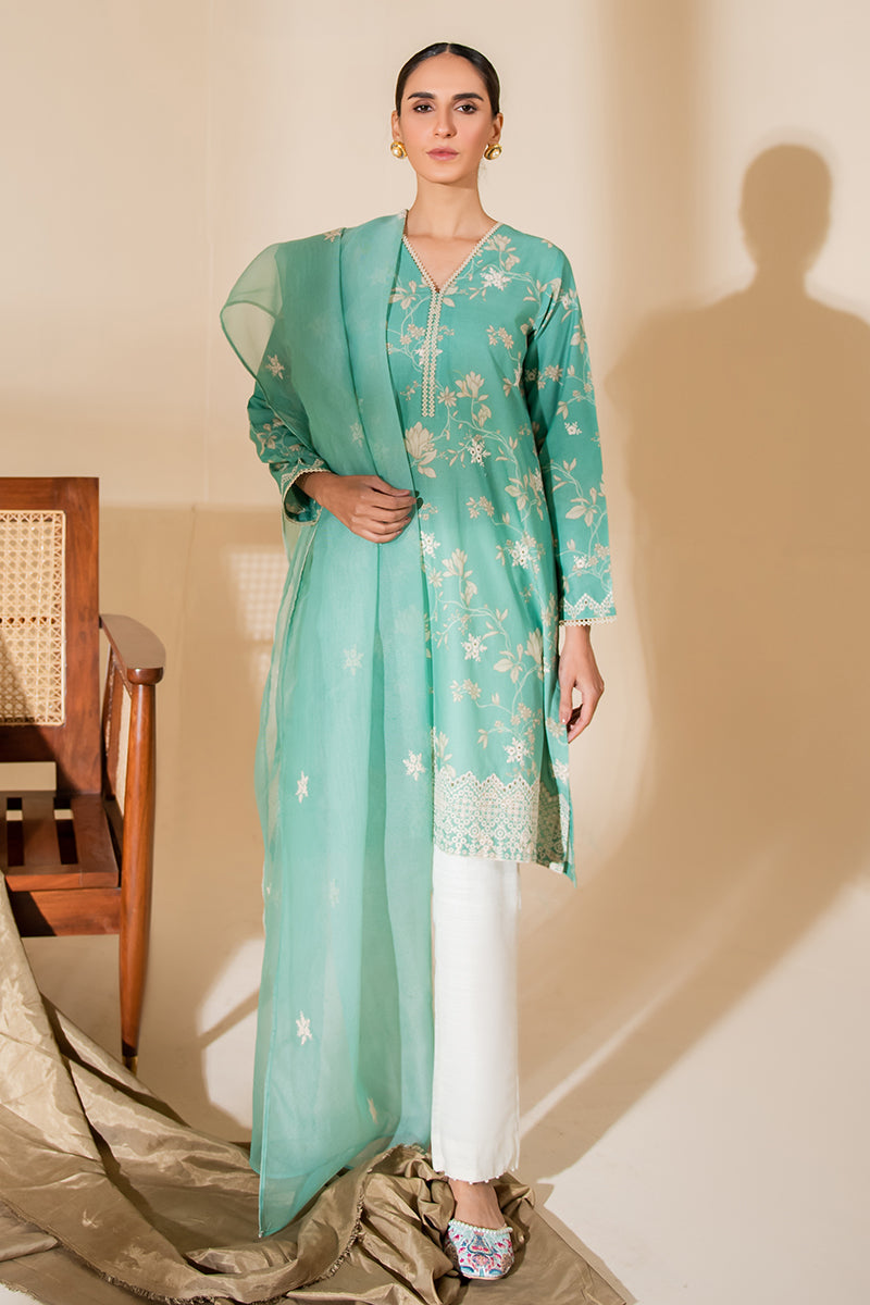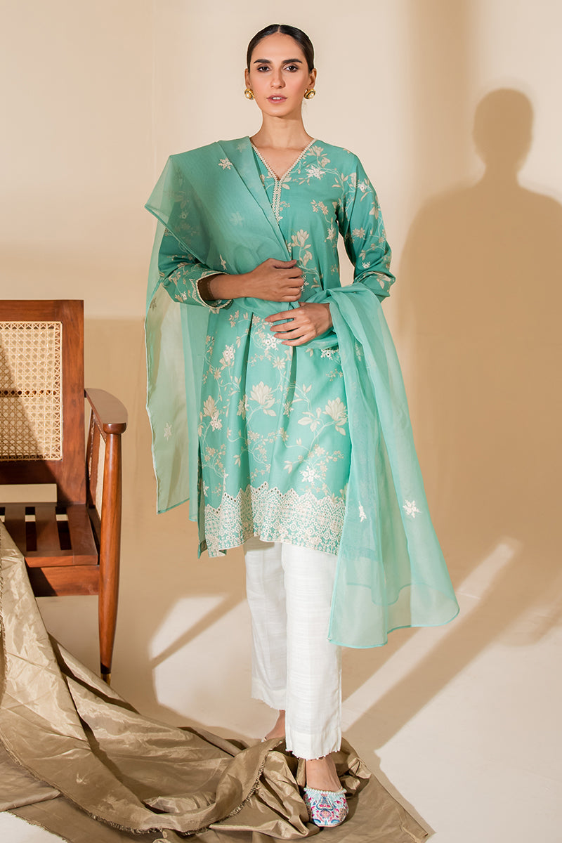 - This Short Embroidered Ferozi Kurta Would Look The Best With A Beige Shalwar, And Cross Stitch’s Skye Khussas To Wear To Office