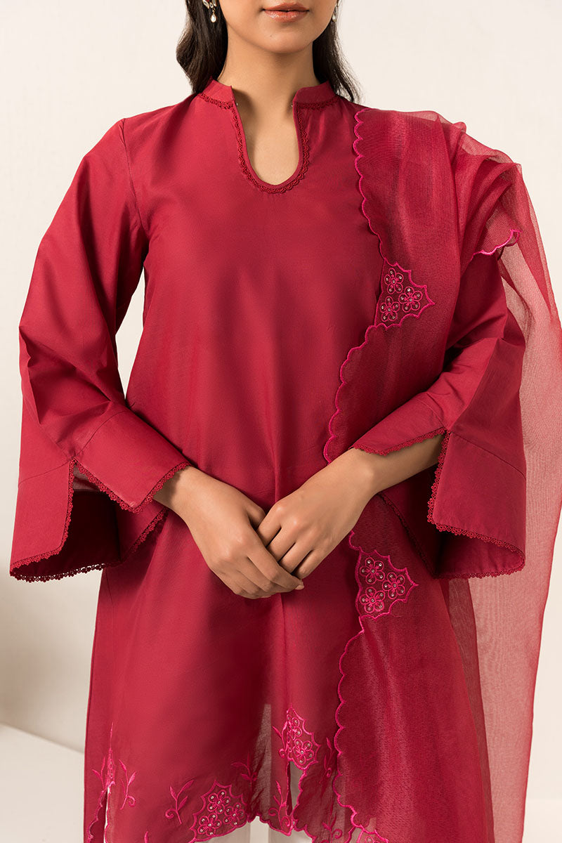 Discover The Elegance Of The Wild Rose-2Pc (Shirt & Dupatta) Set. The A-Line Lawn Shirt Features Intricate Embroidery And Cutwork Details On The Hem, As Well As A Keyhole And Lace Neckline. The Sleeves Flare With A Delicate Slit And Lace Details. Complete The Look With The Beautiful Lace And Rajjo Net Embroidered Dupatta.
